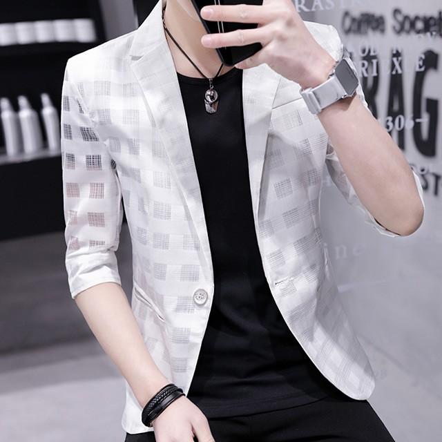 白 ホワイト テーラードジャケット メンズ 薄手 サマージャケット 黒 カジュアル 7分袖丈 サマーブレザー 大きいサイズ 春アウター Lh Kittyshop 通販 Yahoo ショッピング